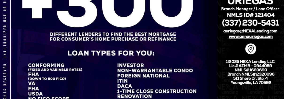 Hi, my name is Anna Uriegas. I’m a Loan Officer with NEXA Lending LLC., offering personalized mortgage solutions, fast customized quotes, great rates and service with integrity.