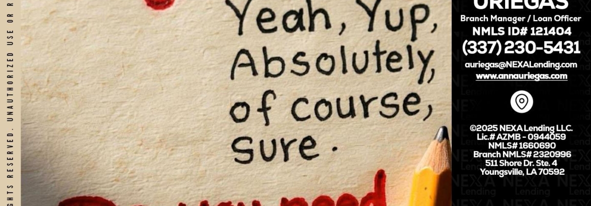 Hi, my name is Anna Uriegas. I’m a Loan Officer with NEXA Lending LLC., offering personalized mortgage solutions, fast customized quotes, great rates and service with integrity.