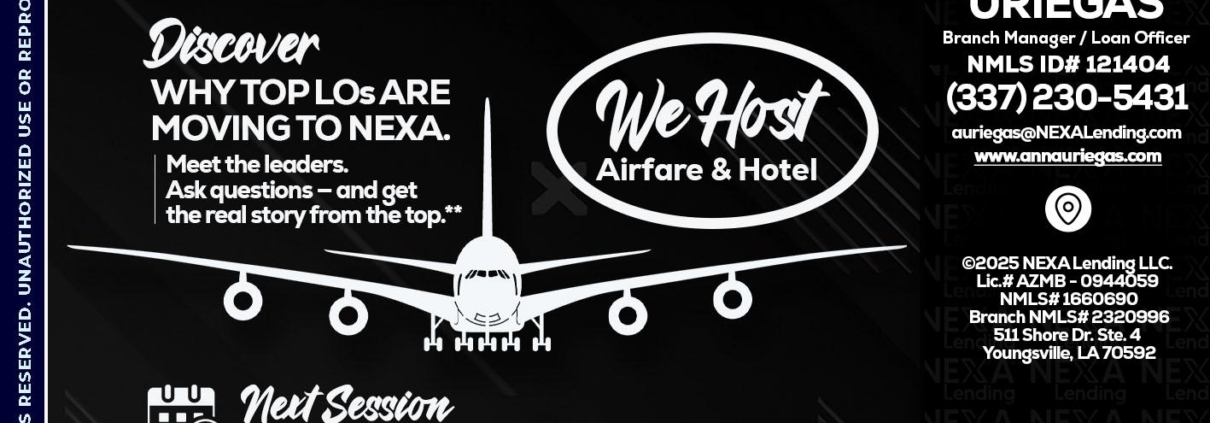 Hi, my name is Anna Uriegas. I’m a Loan Officer with NEXA Mortgage LLC., offering personalized mortgage solutions, fast customized quotes, great rates and service with integrity.