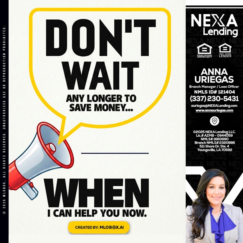 Hi, my name is Anna Uriegas. I’m a Loan Officer with NEXA Lending LLC., offering personalized mortgage solutions, fast customized quotes, great rates and service with integrity.