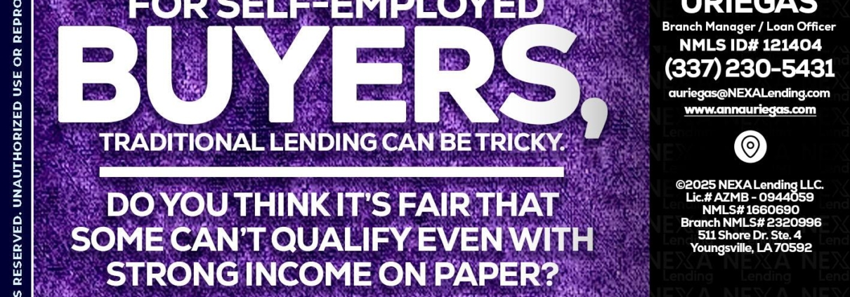 for self employed - Anna Uriegas -Loan OfficerHi, my name is Anna Uriegas. I’m a Loan Officer with NEXA Mortgage LLC., offering personalized mortgage solutions, fast customized quotes, great rates and service with integrity.