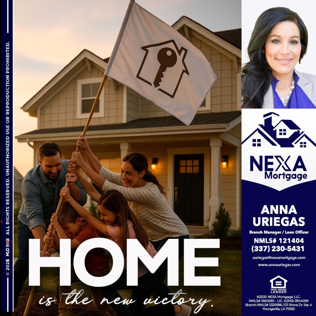 Hi, my name is Anna Uriegas. I’m a Loan Officer with NEXA Mortgage LLC., offering personalized mortgage solutions, fast customized quotes, great rates and service with integrity.