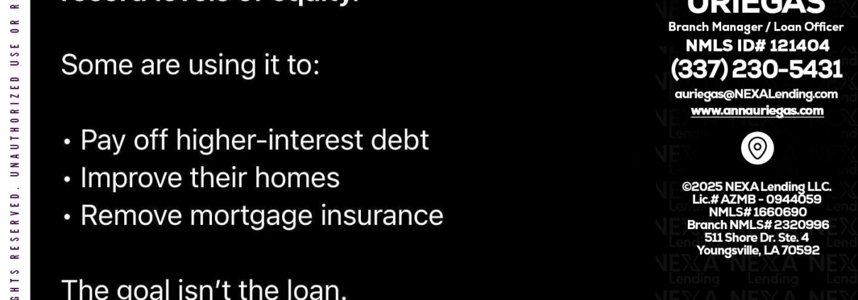 Hi, my name is Anna Uriegas. I’m a Loan Officer with NEXA Lending LLC., offering personalized mortgage solutions, fast customized quotes, great rates and service with integrity.