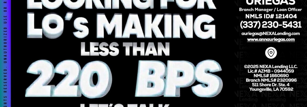 Hi, my name is Anna Uriegas. I’m a Loan Officer with NEXA Lending LLC., offering personalized mortgage solutions, fast customized quotes, great rates and service with integrity.