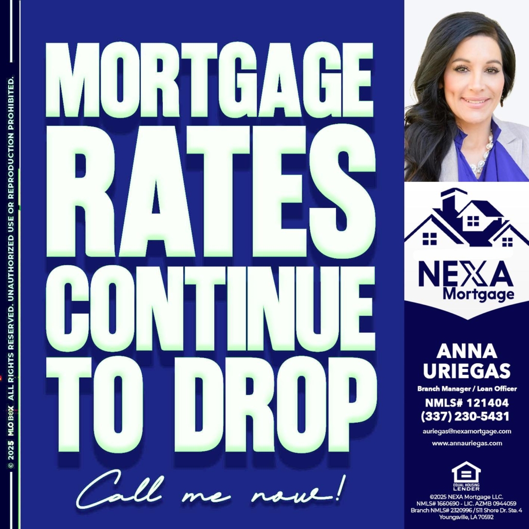 Hi, my name is Anna Uriegas. I’m a Loan Officer with NEXA Mortgage LLC., offering personalized mortgage solutions, fast customized quotes, great rates and service with integrity.