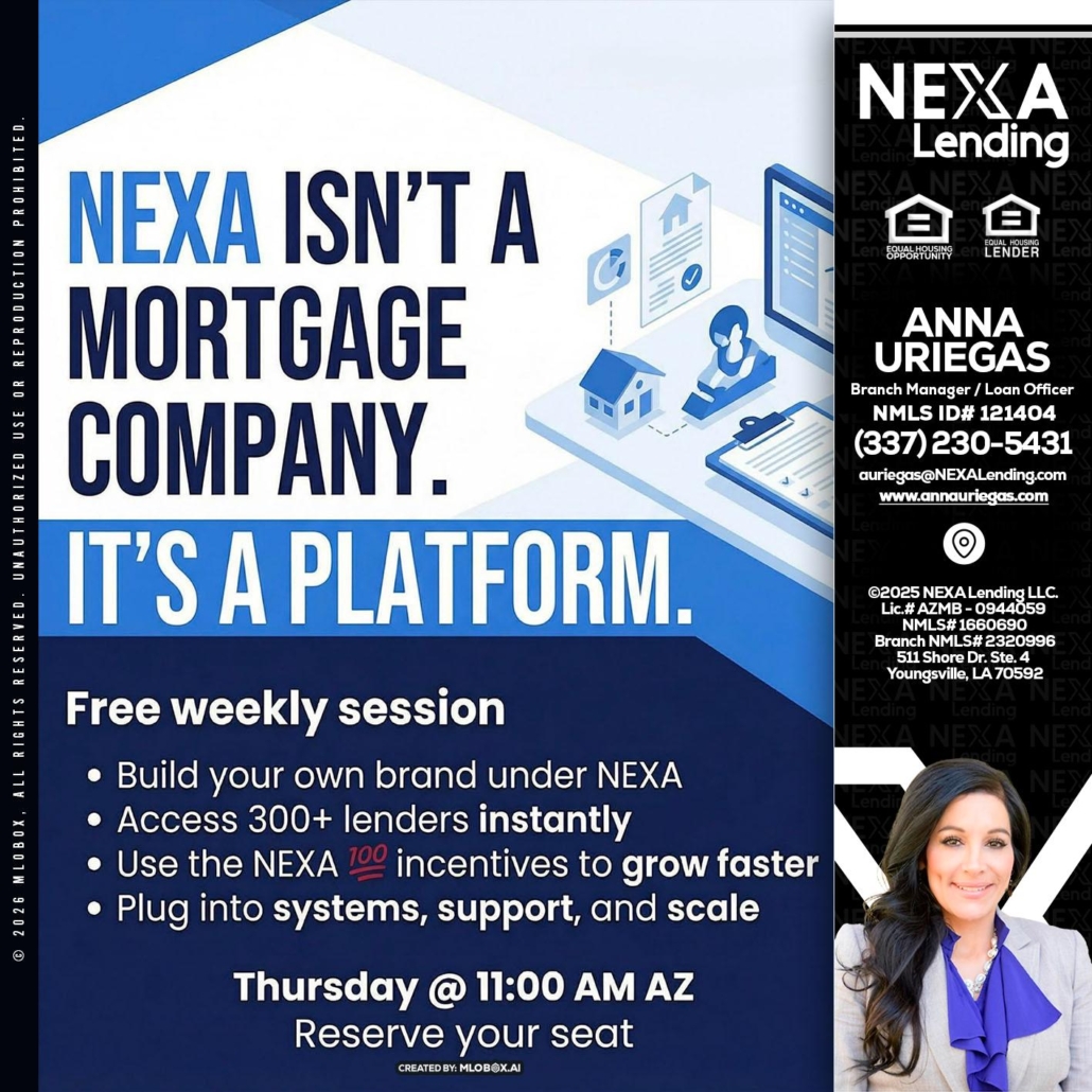NEXA ISNT - Anna Uriegas -Loan OfficerHi, my name is Anna Uriegas. I’m a Loan Officer with NEXA Lending LLC., offering personalized mortgage solutions, fast customized quotes, great rates and service with integrity.
