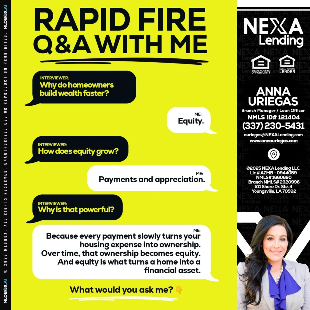 RAPID FIRE Q&A - Anna Uriegas -Loan OfficerHi, my name is Anna Uriegas. I’m a Loan Officer with NEXA Lending LLC., offering personalized mortgage solutions, fast customized quotes, great rates and service with integrity.