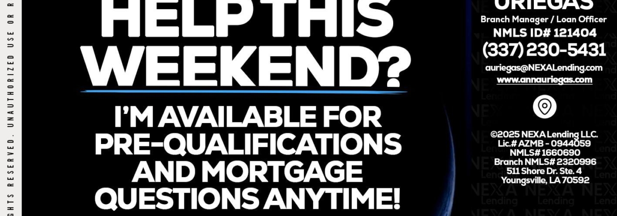 Hi, my name is Anna Uriegas. I’m a Loan Officer with NEXA Lending LLC., offering personalized mortgage solutions, fast customized quotes, great rates and service with integrity.