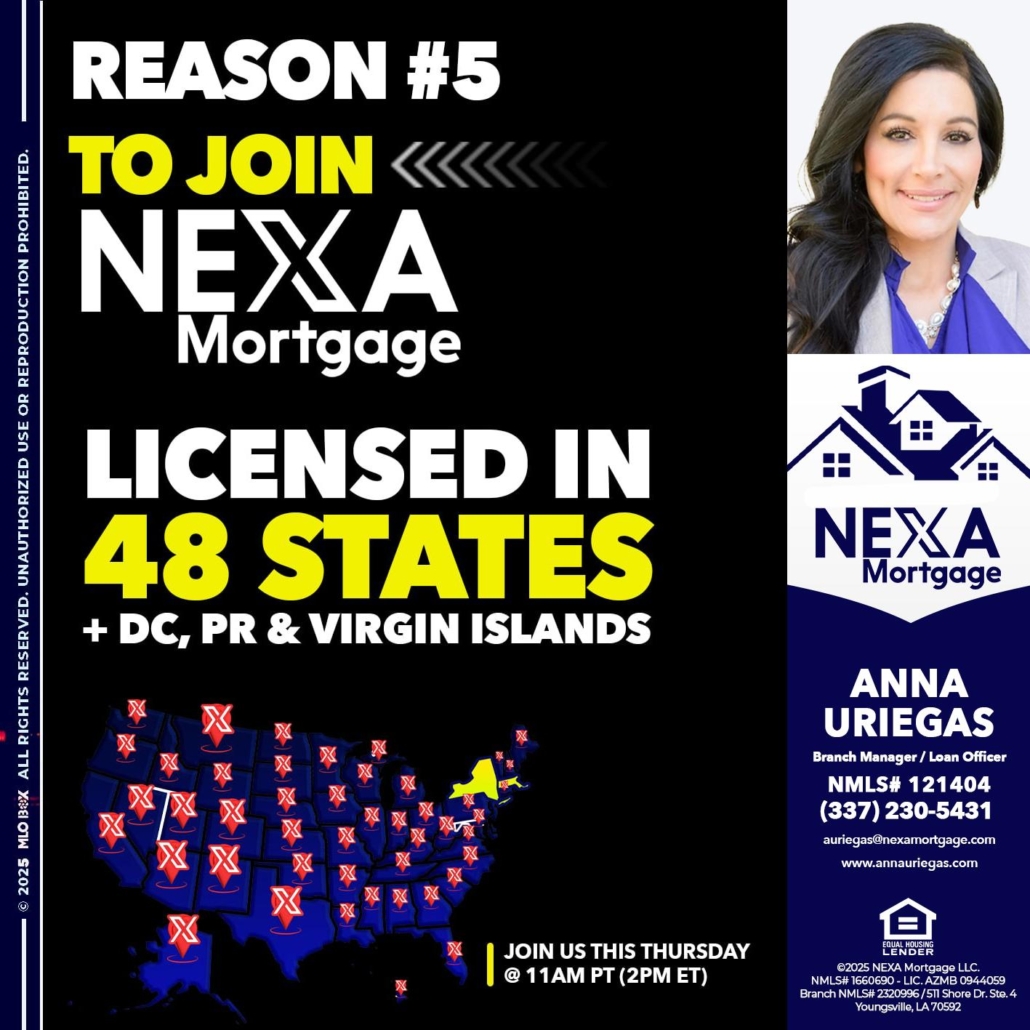 Hi, my name is Anna Uriegas. I’m a Loan Officer with NEXA Mortgage LLC., offering personalized mortgage solutions, fast customized quotes, great rates and service with integrity.