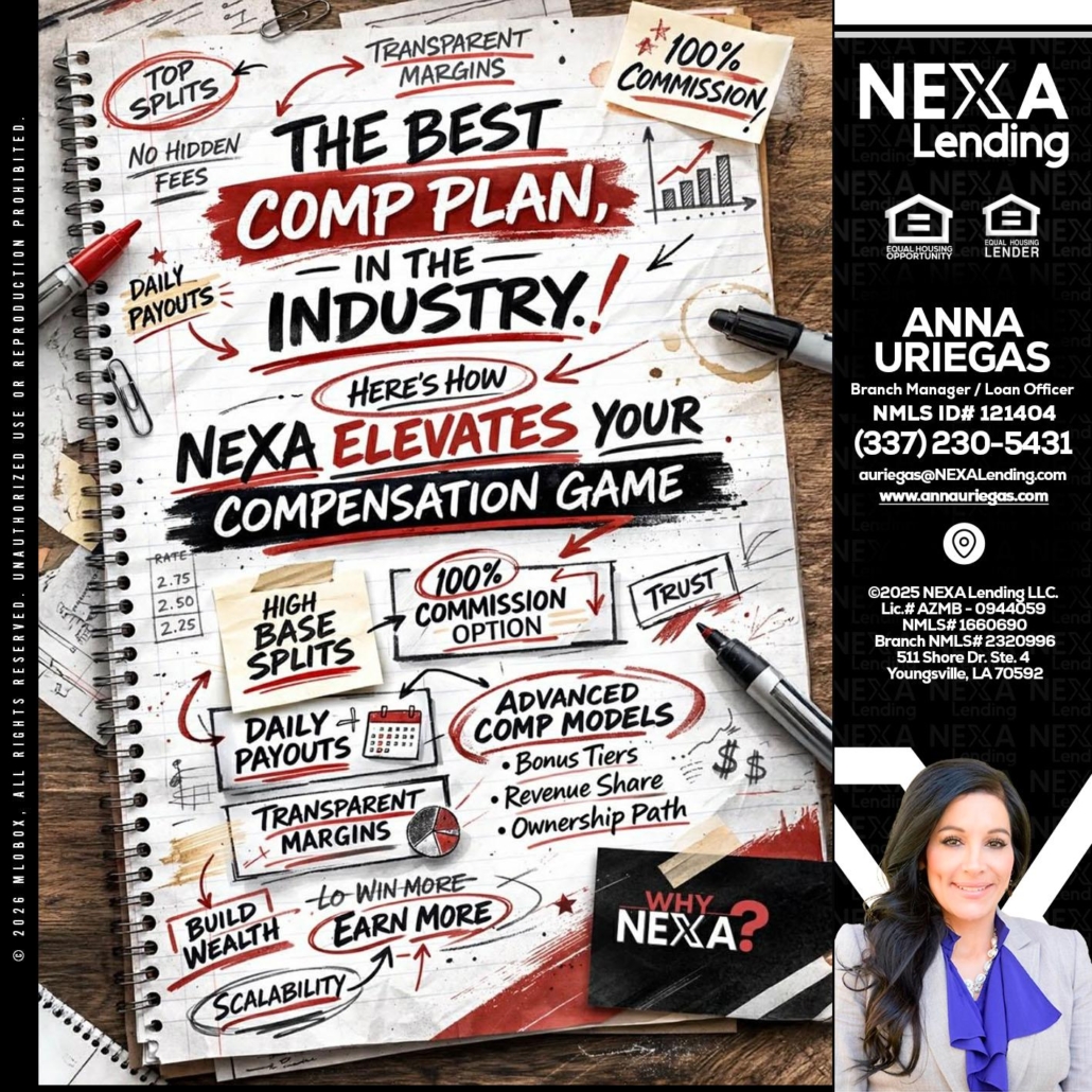 THE BEST COMP - Anna Uriegas -Loan OfficerHi, my name is Anna Uriegas. I’m a Loan Officer with NEXA Lending LLC., offering personalized mortgage solutions, fast customized quotes, great rates and service with integrity.
