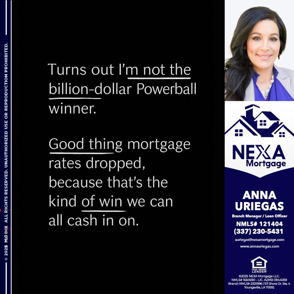 Hi, my name is Anna Uriegas. I’m a Loan Officer with NEXA Mortgage LLC., offering personalized mortgage solutions, fast customized quotes, great rates and service with integrity.
