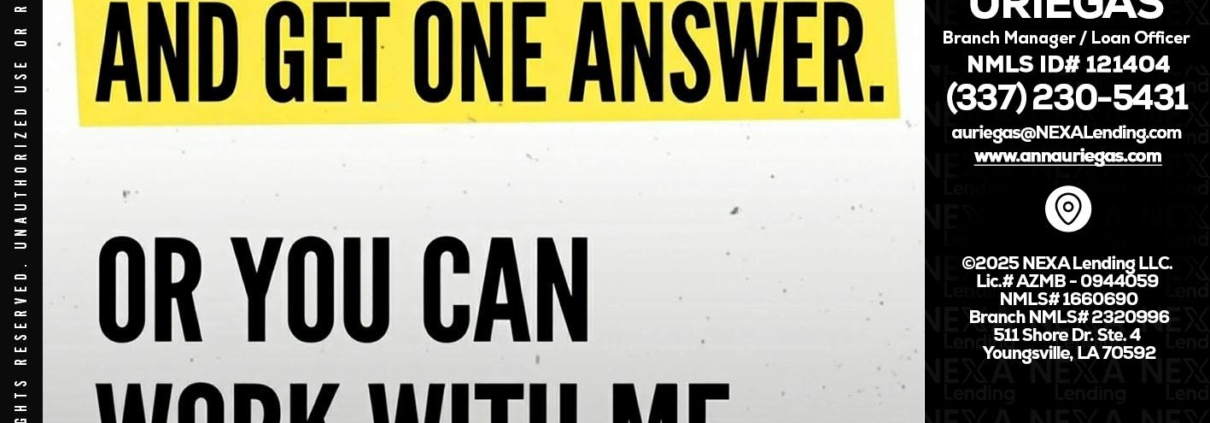 Hi, my name is Anna Uriegas. I’m a Loan Officer with NEXA Lending LLC., offering personalized mortgage solutions, fast customized quotes, great rates and service with integrity.